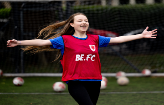 BE. FC is a fun, sociable environment for girls aged 12-16 to enjoy football without any pressure. BE. FC is designed to allow girls of any ability level to pick up a football and have fun with friends in a safe environment.
